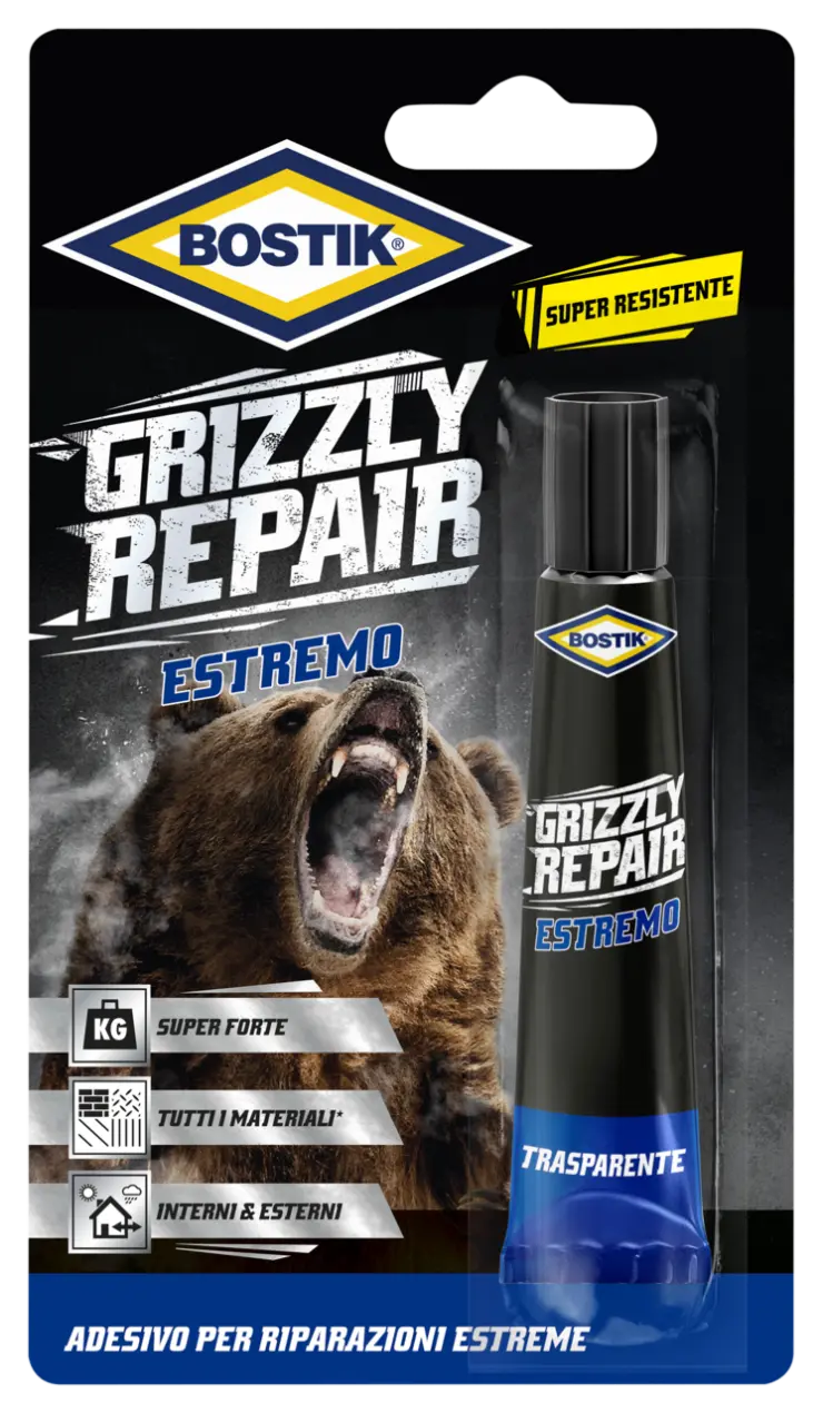 Bostik Grizzly Repair Estremo è un adesivo estremamente forte per la riparazione di materiali porosi e non porosi come legno, tessuto, pelle, sughero, metallo, vetro, plastica, gomma, piastrelle in ceramica, pietra, cemento e molti altri materiali. Adatto per interni ed esterni. Bostik Grizzly Repair Estremo si basa sull'innovativa tecnologia Bostik Polymer. I prodotti basati su questa tecnologia garantiscono una soluzione universale, forte, flessibile, duratura, sicura e facile da usare.