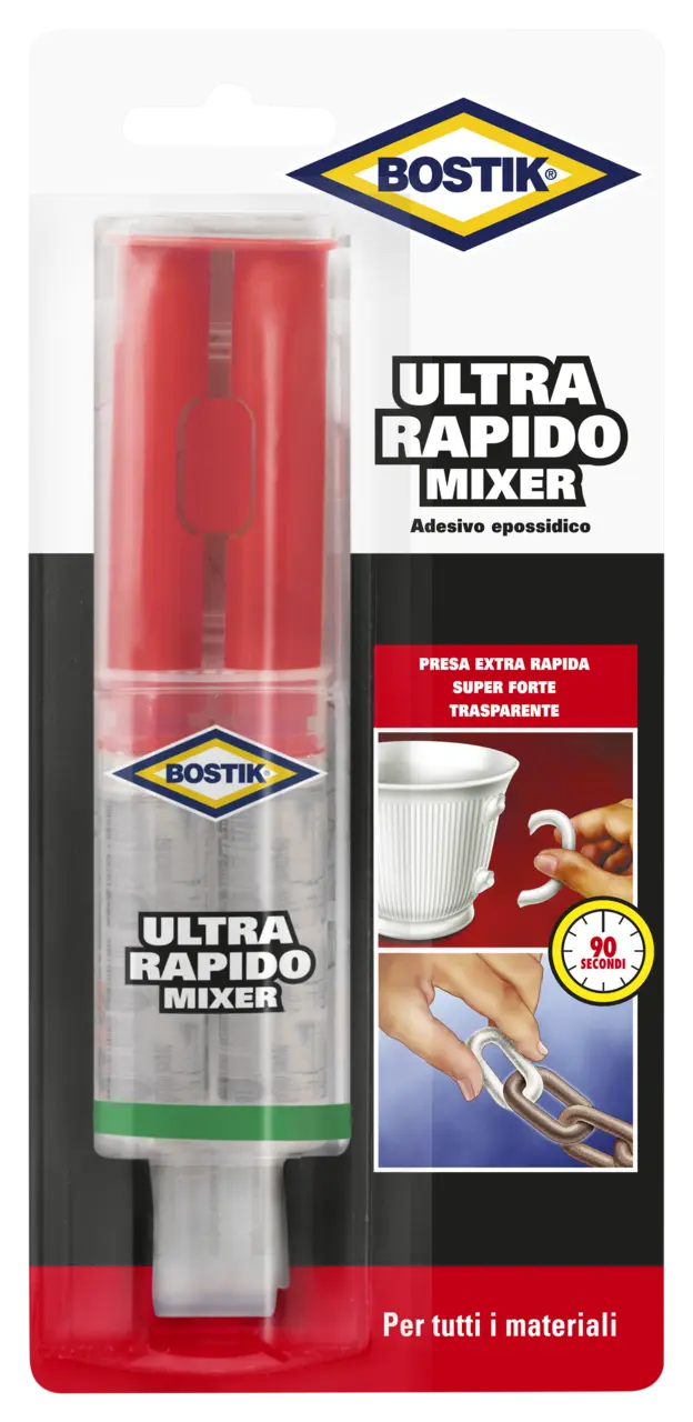Adesivo epossidico bicomponente super rapido e trasparente.